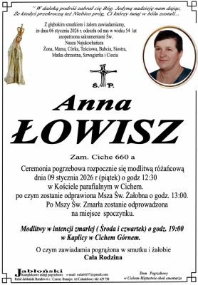Podhale24.pl zastrzega sobie prawo do nie publikowania wspomnień, w szczególności tych nie związanych z profilem działu nekrologi, zawierających wulgaryzmy, wzywających do zachowań niezgodnych z prawem, obrażających osoby publiczne i prywatne, obrażających inne narodowości, rasy, religie itd, oraz te, bez możliwości telefonicznej lub mailowej weryfikacji ich autora.
