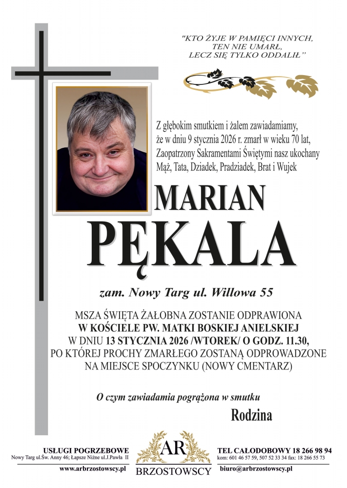 Podhale24.pl zastrzega sobie prawo do nie publikowania wspomnień, w szczególności tych nie związanych z profilem działu nekrologi, zawierających wulgaryzmy, wzywających do zachowań niezgodnych z prawem, obrażających osoby publiczne i prywatne, obrażających inne narodowości, rasy, religie itd, oraz te, bez możliwości telefonicznej lub mailowej weryfikacji ich autora.