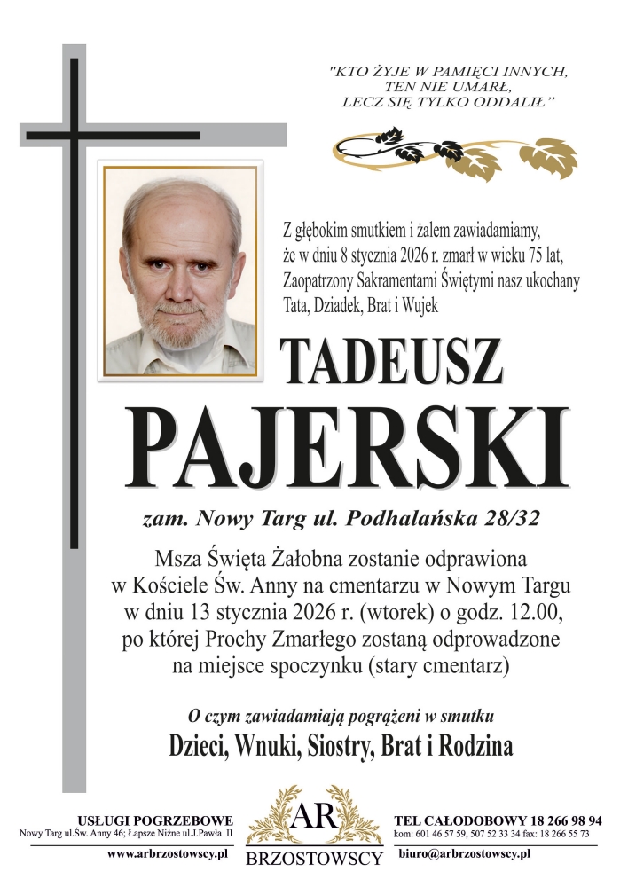 Tadeusz Pajerski - Nekrologi - podhale24.pl