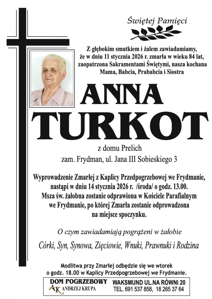 Anna Turkot - Nekrologi - podhale24.pl