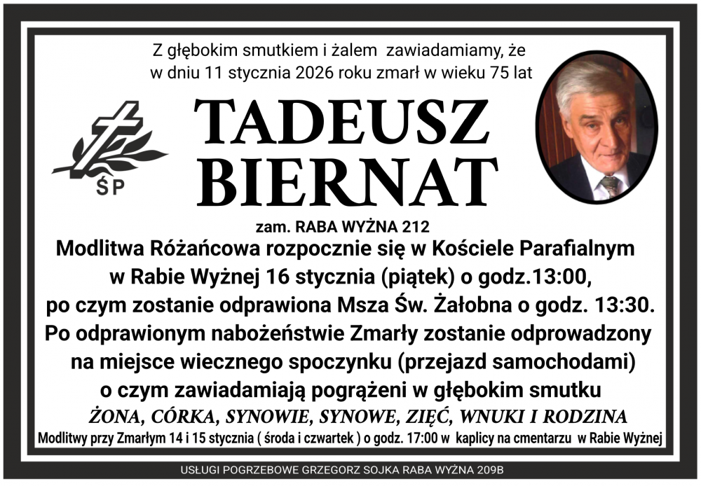 Tadeusz Biernat - Nekrologi - podhale24.pl