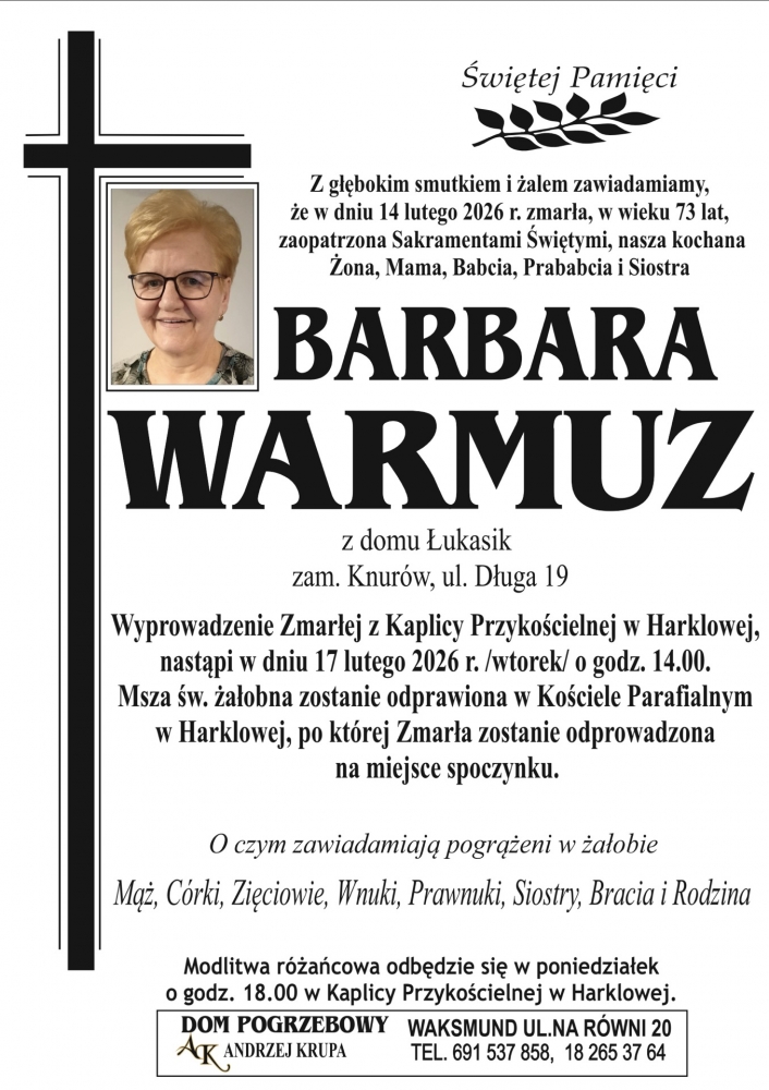 Barbara Warmuz - Nekrologi - podhale24.pl