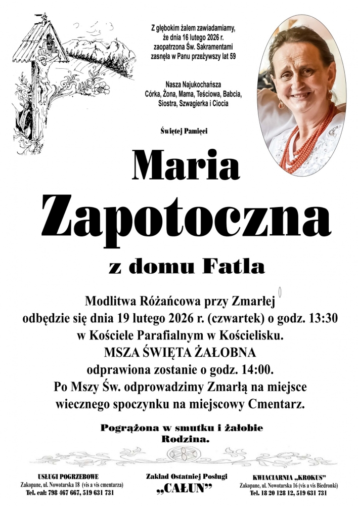 Maria Zapotoczna - Nekrologi - podhale24.pl