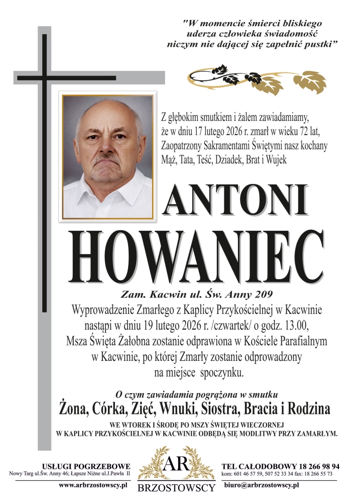Antoni Howaniec - Nekrologi - podhale24.pl