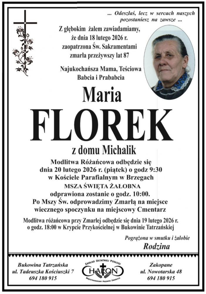 Maria Florek - Nekrologi - podhale24.pl