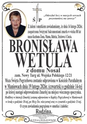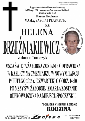 Podhale24.pl zastrzega sobie prawo do nie publikowania wspomnień, w szczególności tych nie związanych z profilem działu nekrologi, zawierających wulgaryzmy, wzywających do zachowań niezgodnych z prawem, obrażających osoby publiczne i prywatne, obrażających inne narodowości, rasy, religie itd, oraz te, bez możliwości telefonicznej lub mailowej weryfikacji ich autora.