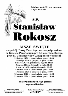 Podhale24.pl zastrzega sobie prawo do nie publikowania wspomnień, w szczególności tych nie związanych z profilem działu nekrologi, zawierających wulgaryzmy, wzywających do zachowań niezgodnych z prawem, obrażających osoby publiczne i prywatne, obrażających inne narodowości, rasy, religie itd, oraz te, bez możliwości telefonicznej lub mailowej weryfikacji ich autora.