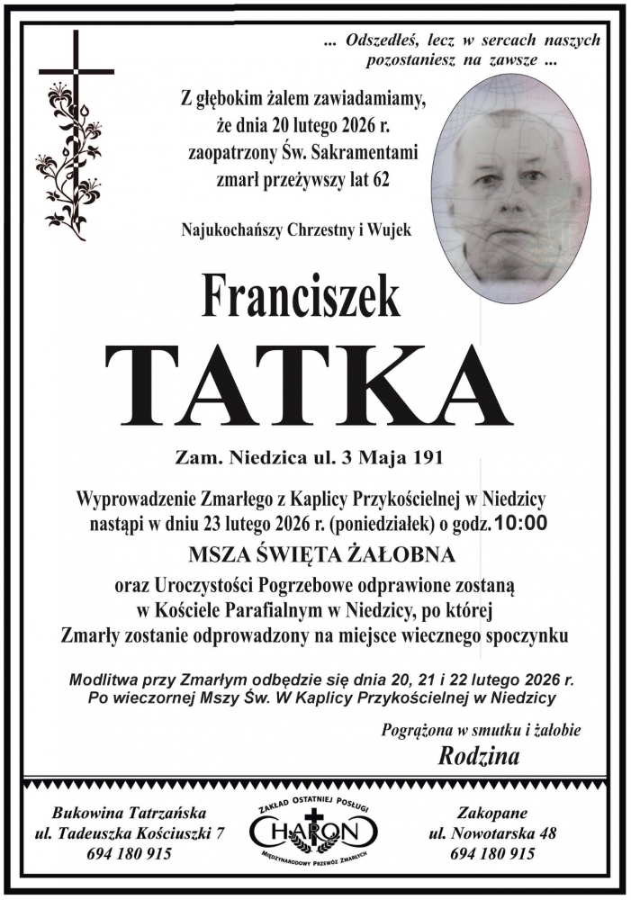 Franciszek Tatka - Nekrologi - podhale24.pl