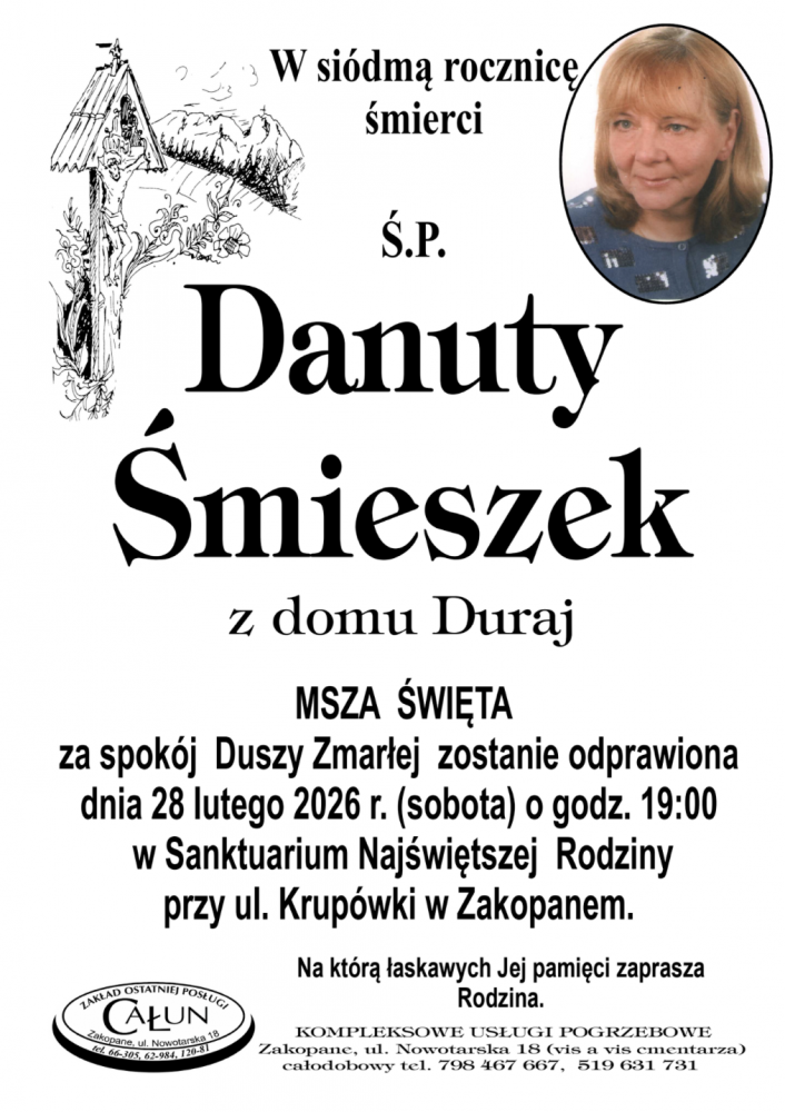 Danuta Śmieszek - Nekrologi - podhale24.pl