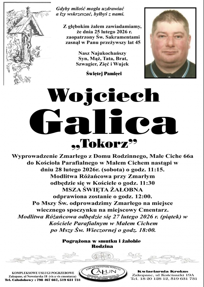 Podhale24.pl zastrzega sobie prawo do nie publikowania wspomnień, w szczególności tych nie związanych z profilem działu nekrologi, zawierających wulgaryzmy, wzywających do zachowań niezgodnych z prawem, obrażających osoby publiczne i prywatne, obrażających inne narodowości, rasy, religie itd, oraz te, bez możliwości telefonicznej lub mailowej weryfikacji ich autora.