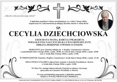 Podhale24.pl zastrzega sobie prawo do nie publikowania wspomnień, w szczególności tych nie związanych z profilem działu nekrologi, zawierających wulgaryzmy, wzywających do zachowań niezgodnych z prawem, obrażających osoby publiczne i prywatne, obrażających inne narodowości, rasy, religie itd, oraz te, bez możliwości telefonicznej lub mailowej weryfikacji ich autora.