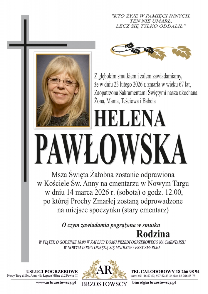 Helena Pawłowska - Nekrologi - podhale24.pl