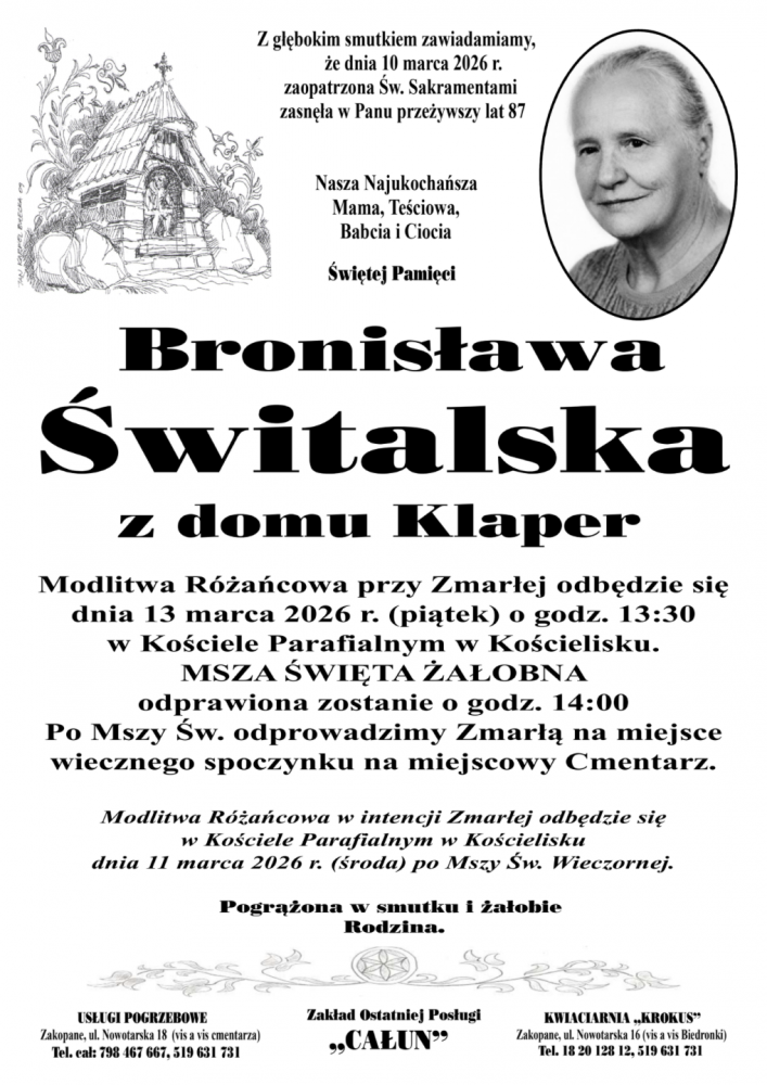 Bronisława Świtalska - Nekrologi - podhale24.pl