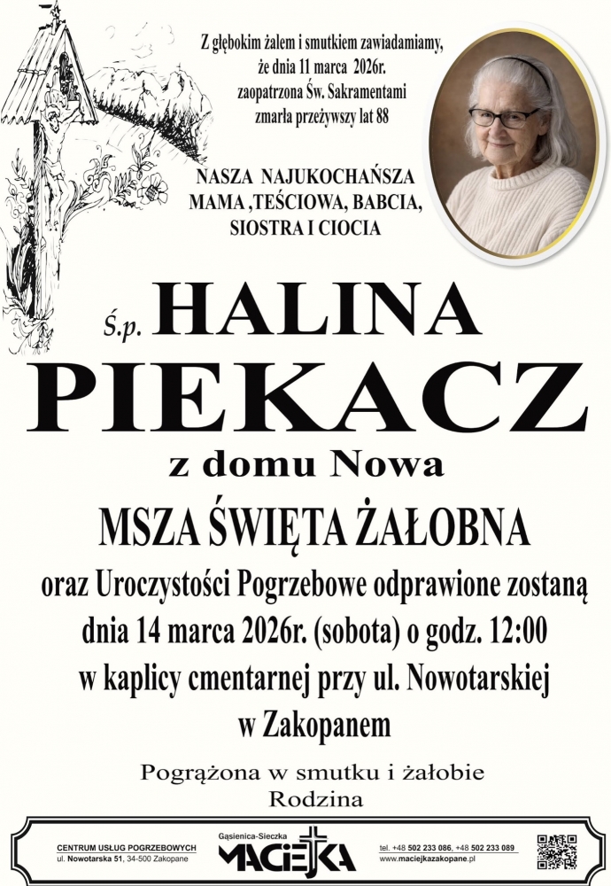 Podhale24.pl zastrzega sobie prawo do nie publikowania wspomnień, w szczególności tych nie związanych z profilem działu nekrologi, zawierających wulgaryzmy, wzywających do zachowań niezgodnych z prawem, obrażających osoby publiczne i prywatne, obrażających inne narodowości, rasy, religie itd, oraz te, bez możliwości telefonicznej lub mailowej weryfikacji ich autora.