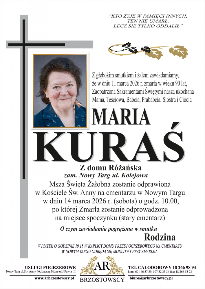 Podhale24.pl zastrzega sobie prawo do nie publikowania wspomnień, w szczególności tych nie związanych z profilem działu nekrologi, zawierających wulgaryzmy, wzywających do zachowań niezgodnych z prawem, obrażających osoby publiczne i prywatne, obrażających inne narodowości, rasy, religie itd, oraz te, bez możliwości telefonicznej lub mailowej weryfikacji ich autora.