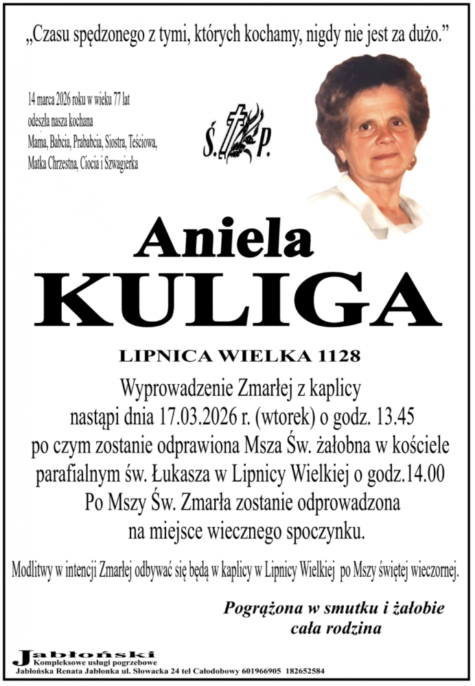Aniela Kuliga - Nekrologi - podhale24.pl