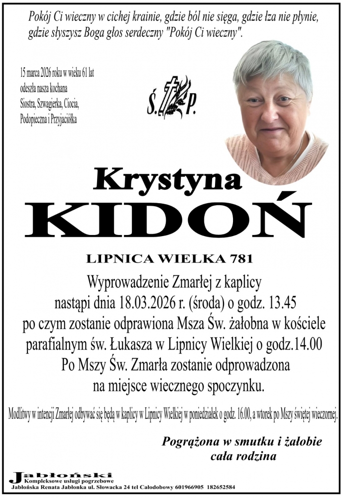Krystyna Kidoń - Nekrologi - podhale24.pl