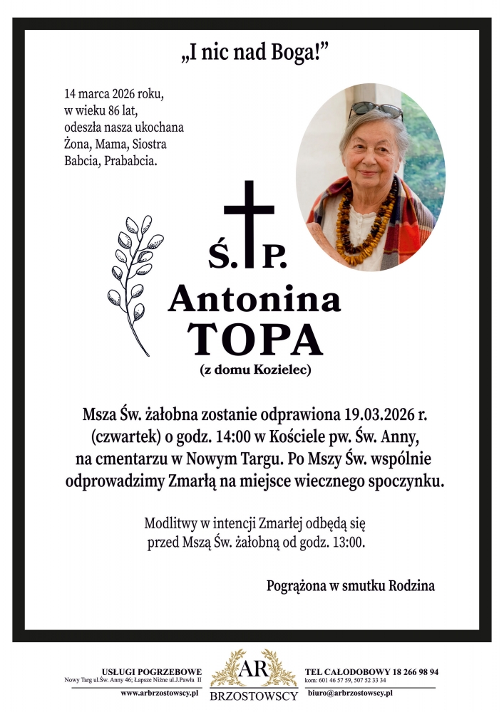 Podhale24.pl zastrzega sobie prawo do nie publikowania wspomnień, w szczególności tych nie związanych z profilem działu nekrologi, zawierających wulgaryzmy, wzywających do zachowań niezgodnych z prawem, obrażających osoby publiczne i prywatne, obrażających inne narodowości, rasy, religie itd, oraz te, bez możliwości telefonicznej lub mailowej weryfikacji ich autora.