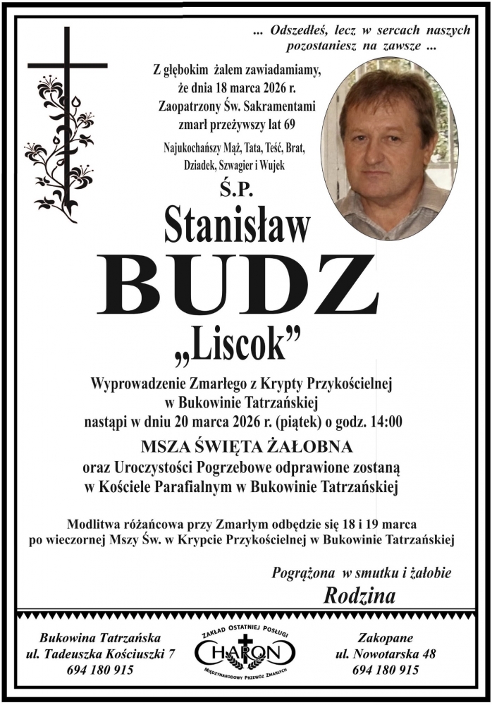 Stanisłąw Budz - Nekrologi - podhale24.pl