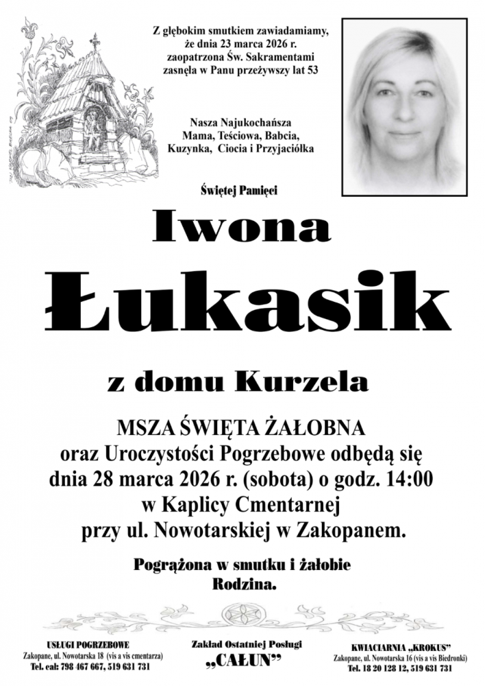 Iwona Łukasik - Nekrologi - podhale24.pl