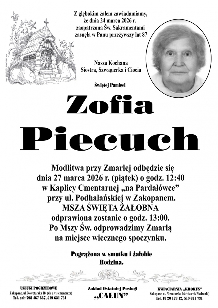 Zofia Piecuch - Nekrologi - podhale24.pl