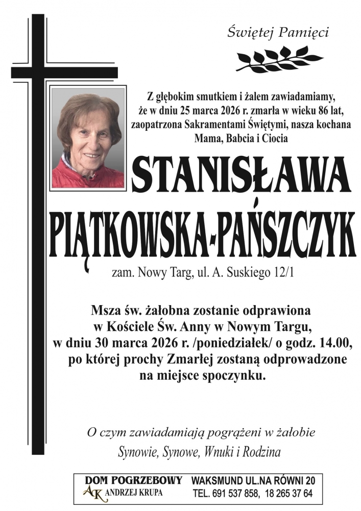 Stanisława Piątkowska-Pańszczyk - Nekrologi - podhale24.pl