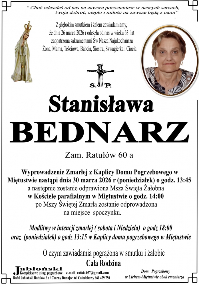 Stanisława Bednarz - Nekrologi - podhale24.pl