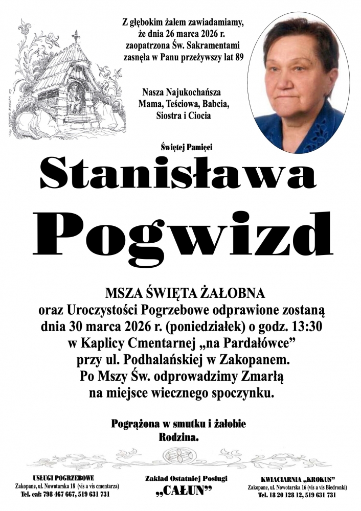 Stanisława Pogwizd - Nekrologi - podhale24.pl