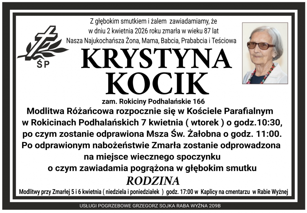 Krystyna Kocik - Nekrologi - podhale24.pl