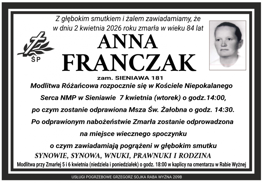Anna Franczak - Nekrologi - podhale24.pl