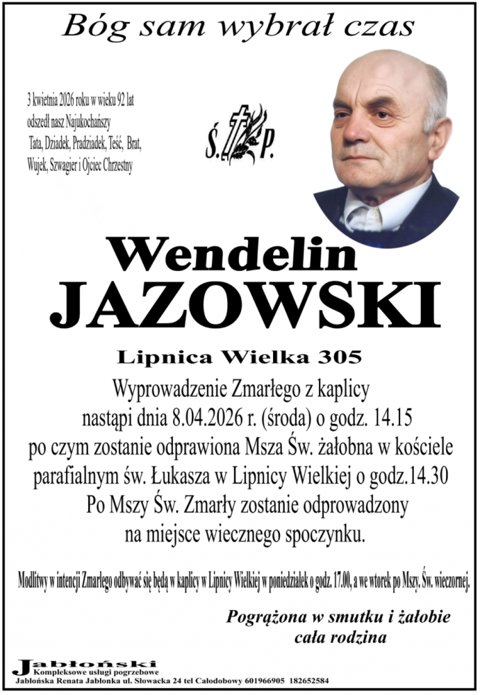 Wendelin Jazowski - Nekrologi - podhale24.pl